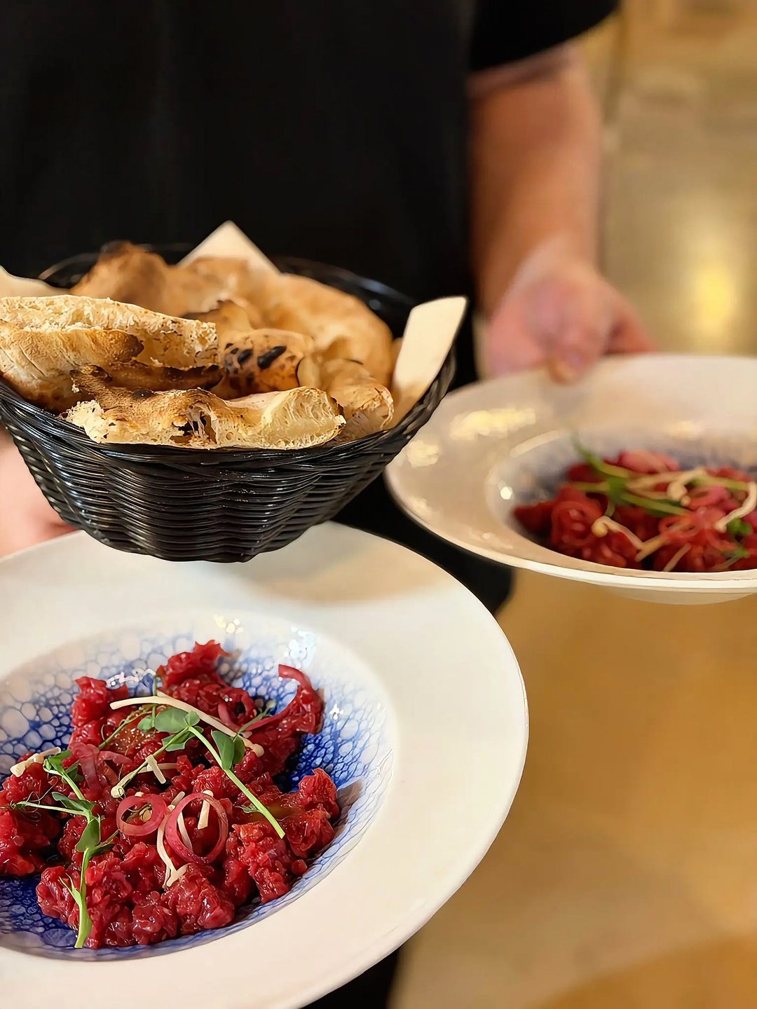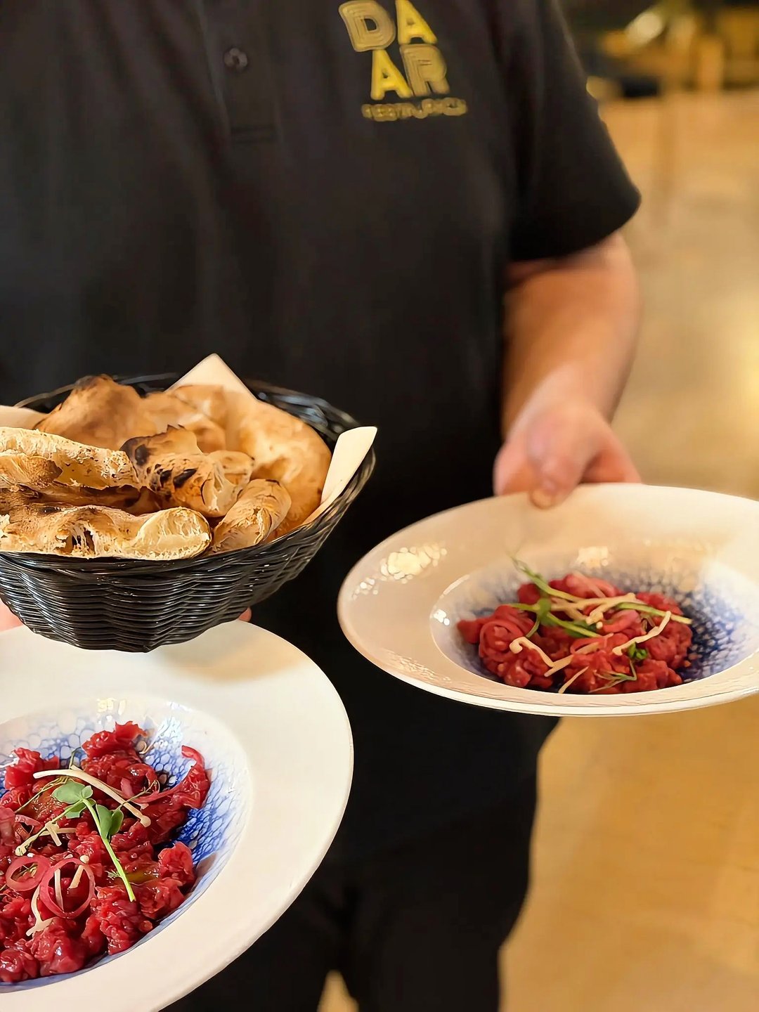 Restauracja włoska i śródziemnomorska w Warszawie na Woli, przy Alei Jana Pawła II 71, łącząca autentyczne receptury południa Europy z wyselekcjonowanym winem i elegancką atmosferą. W menu znajdziesz ręcznie przygotowywane pasty, pizzę na włoskiej mące, burratę, vitello tonnato, świeże owoce morza oraz klasyczne dania na guanciale i pecorino romano. Pracujemy na oliwie extra vergine, dojrzewających serach i sezonowych produktach, dbając o jakość każdego składnika. DAAR to idealne miejsce na kolację, spotkanie biznesowe lub wyjątkowy wieczór w klimacie południa Europy.